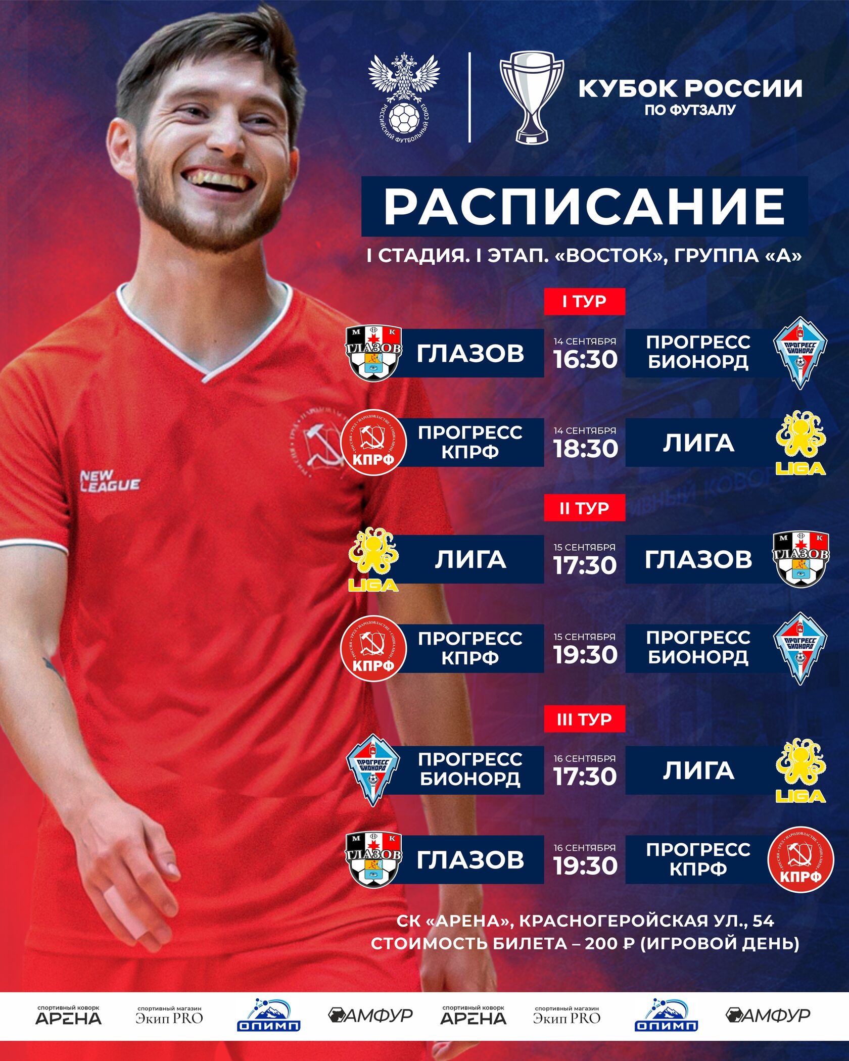 С 14 по 16 сентября в Арене впервые пройдут матчи первого этапа первой стадии Кубка России по футзалу среди мужских команд.