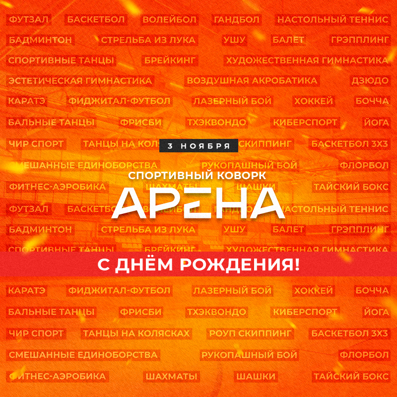 От всей души поздравляем руководство, сотрудников и каждого, кто приложил руку к созданию и развитию нашей любимой Арены. Особое спасибо нашим посетителям, болельщикам, спортсменам и тренерам!
