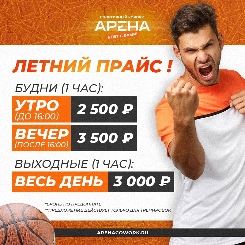 P.S. Также обращаем Ваше внимание на то, что летом Арена работает с 08:00 до 22:00
